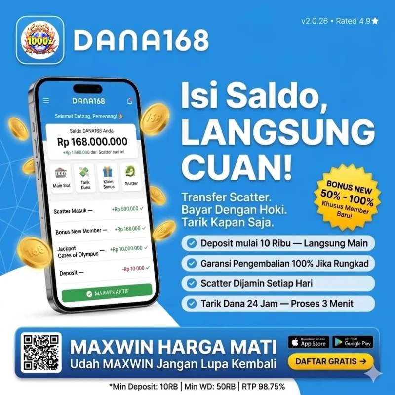 Dana168 kembali menjadi perbincangan hangat di komunitas slot online Indonesia. Situs yang mengusung konsep slot deposit dana dengan modal mulai 10 ribu rupiah ini disebut-sebut sebagai platform paling gacor sepanjang awal 2026 — setelah sejumlah pemain mengklaim berhasil meraih maxwin dari modal yang terbilang kecil.